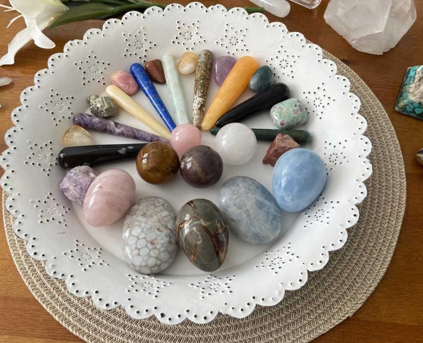 Wirkungskraft der Steine: Einführung in die energetischen Eigenschaften ausgewählter Edelsteine (z. B. Rosenquarz für das Herz oder Amethyst für die Ruhe).